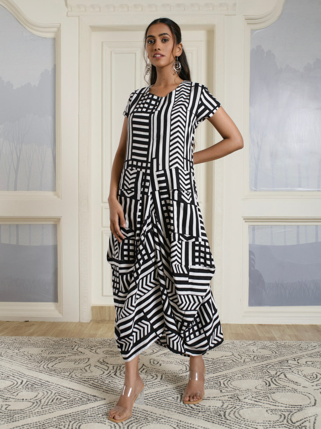 Black Ikat-Inspired Print Nehru Reversible-Jacket