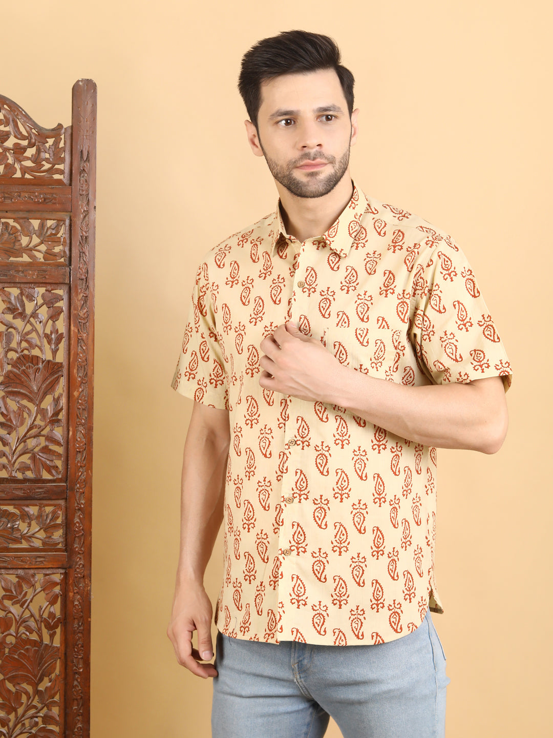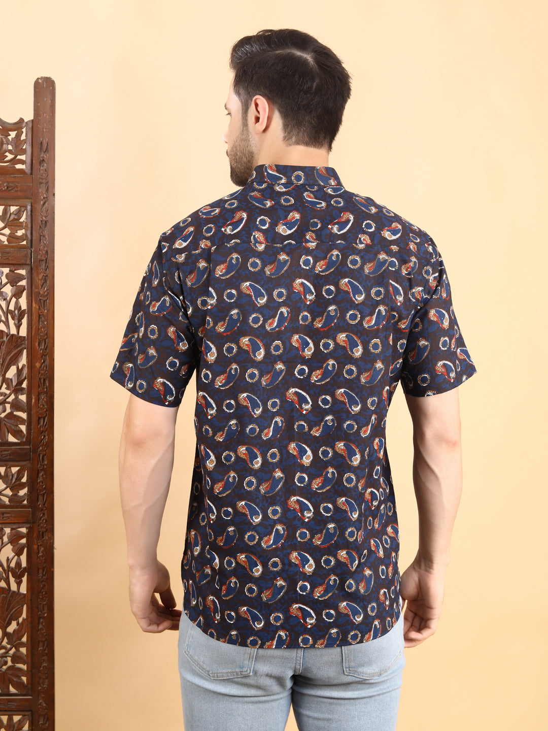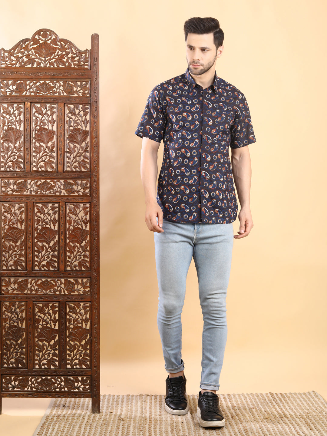 Half-Sleeves Navy Blue Paisley Printed Shirt