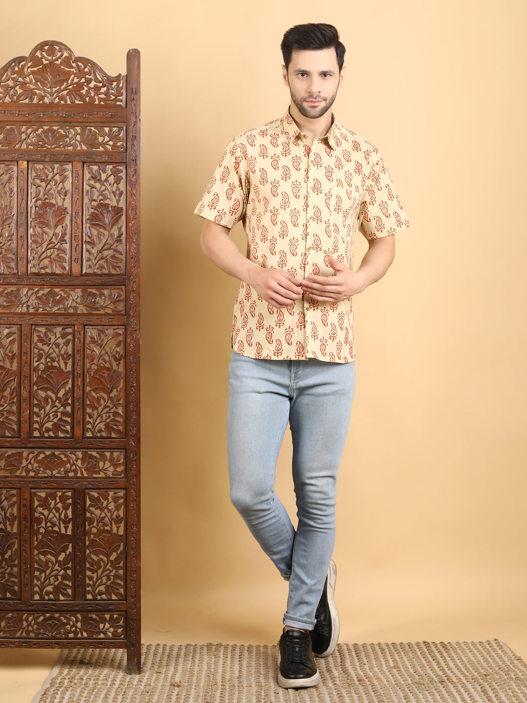 Half-Sleeves Shirt Beige Short Sleeve Shirt