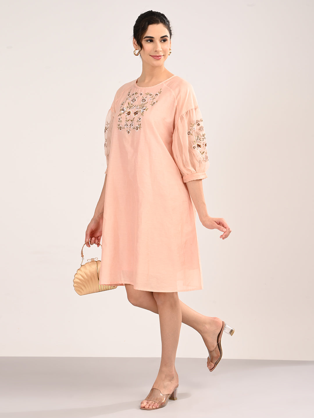 Peach Embroidered Organza Dress